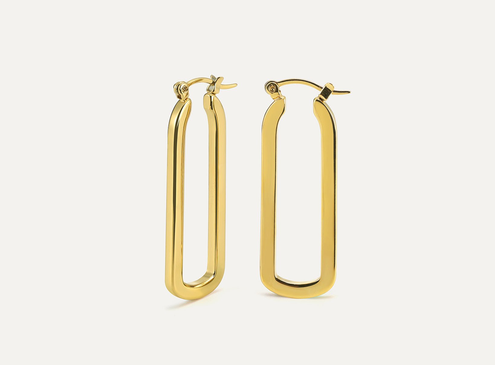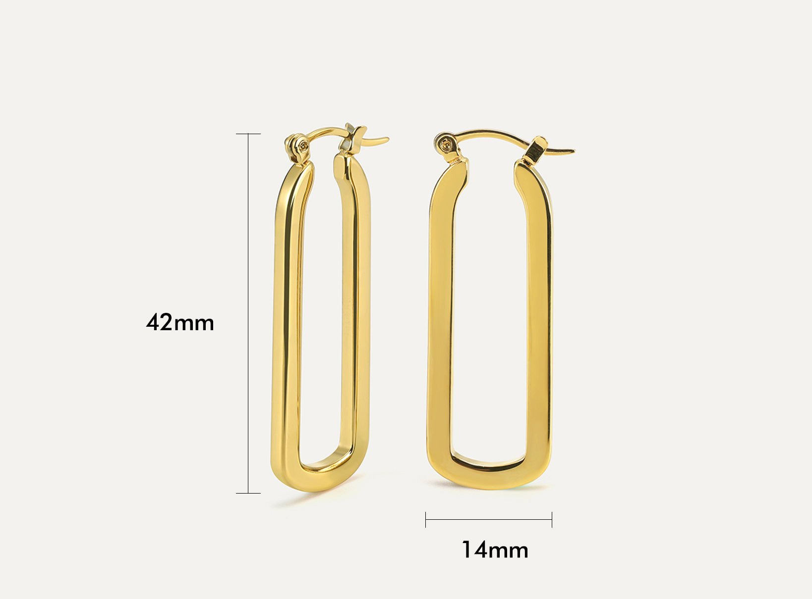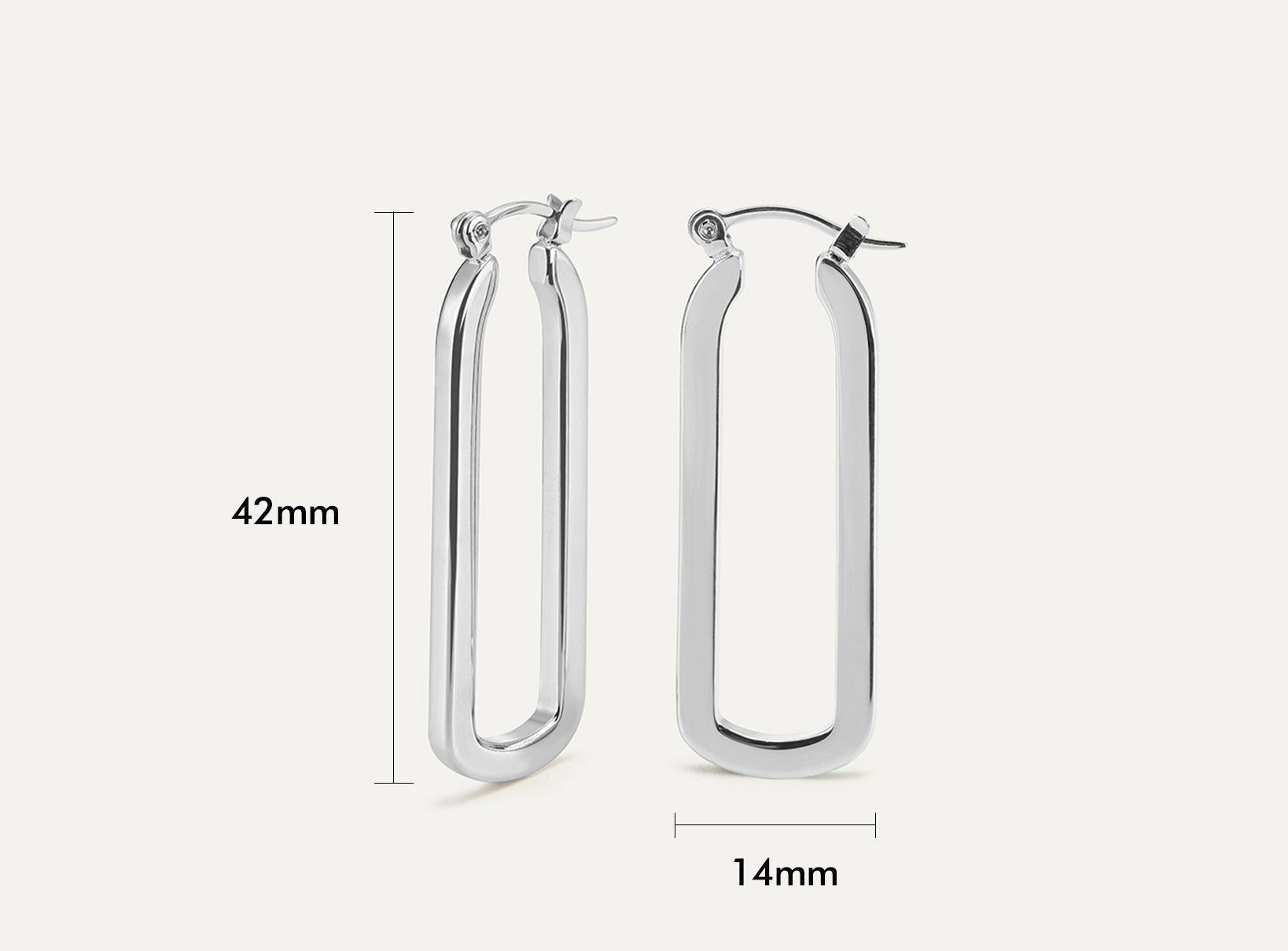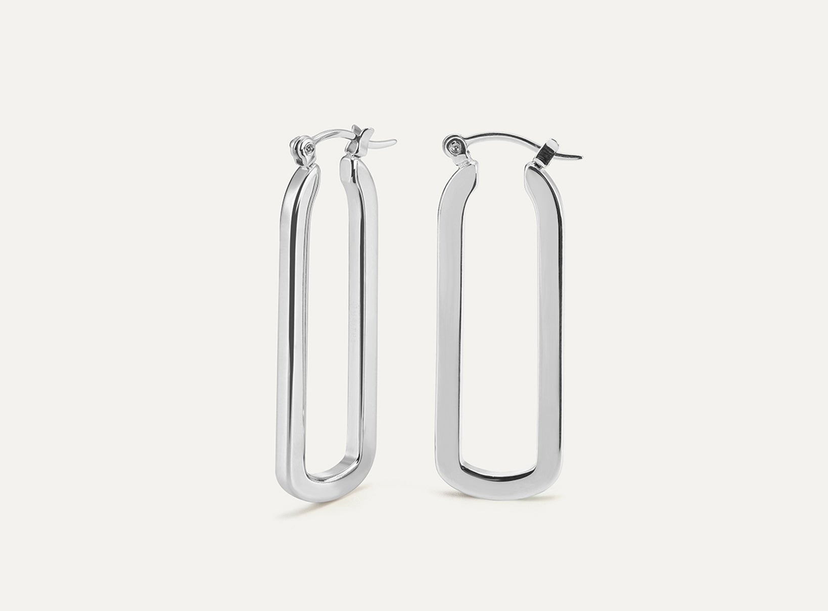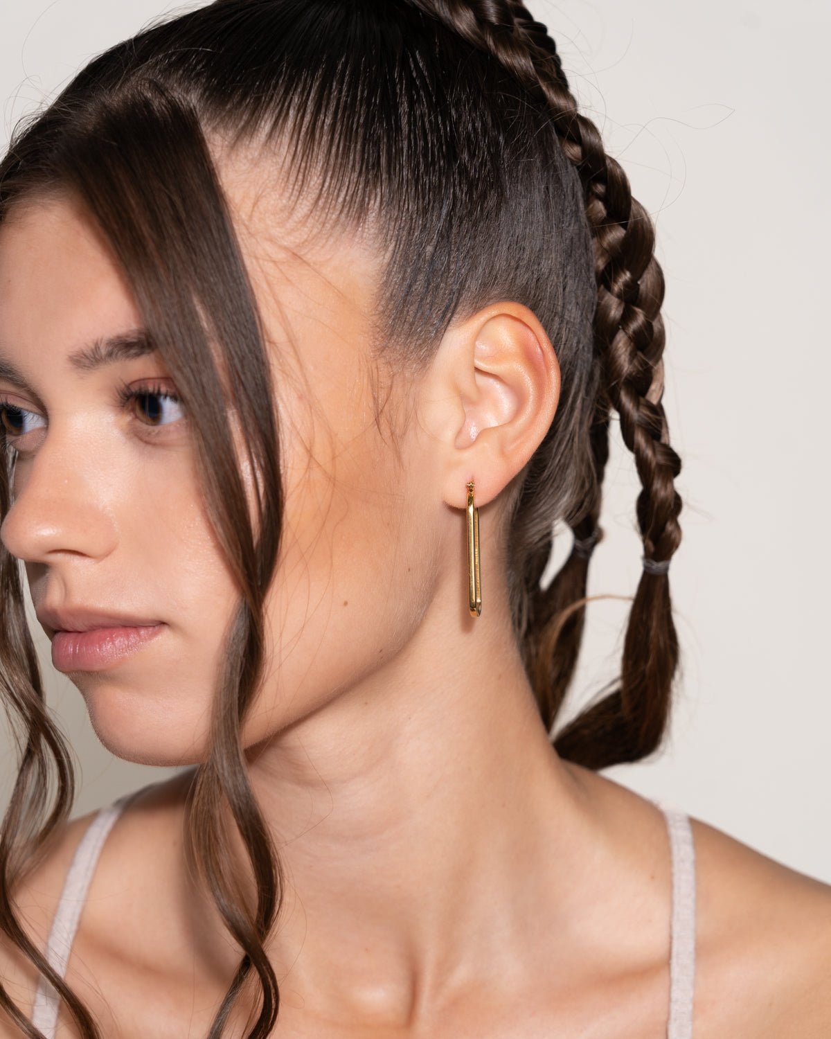 A long, elegant earring that feels as light as it looks. Its slim, shiny shape gives the effect of slender metal strips, catching the light with every move. Perfect for modern, graphic looks — clean, minimal, and striking.