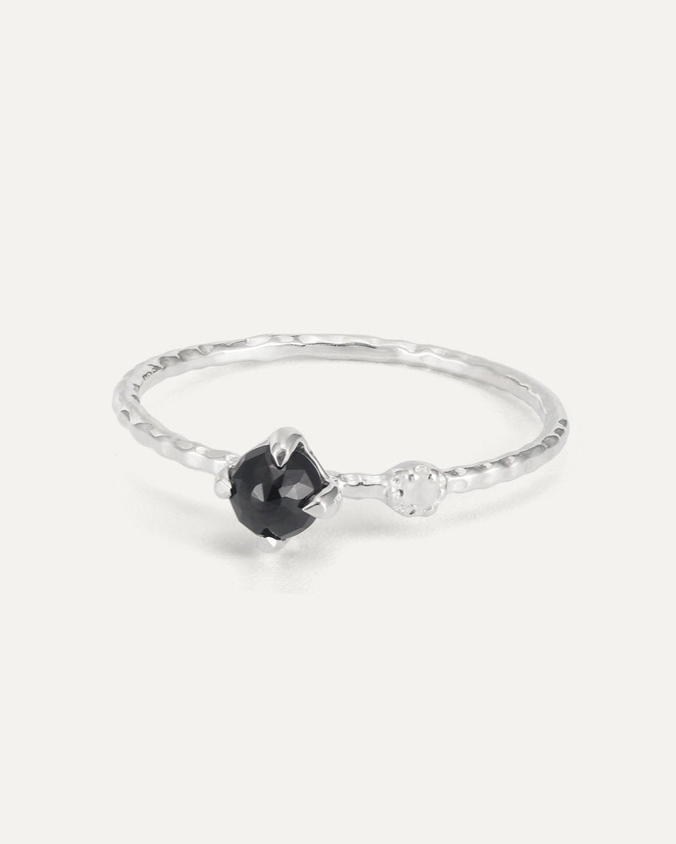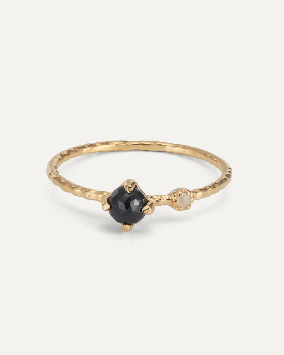 Design: With a bold, larger black spinel stone and a smaller, softly glowing white agate, this ring strikes a stunning balance between light and dark. The slim ring band lends it a refined, understated elegance that’s both striking and special.