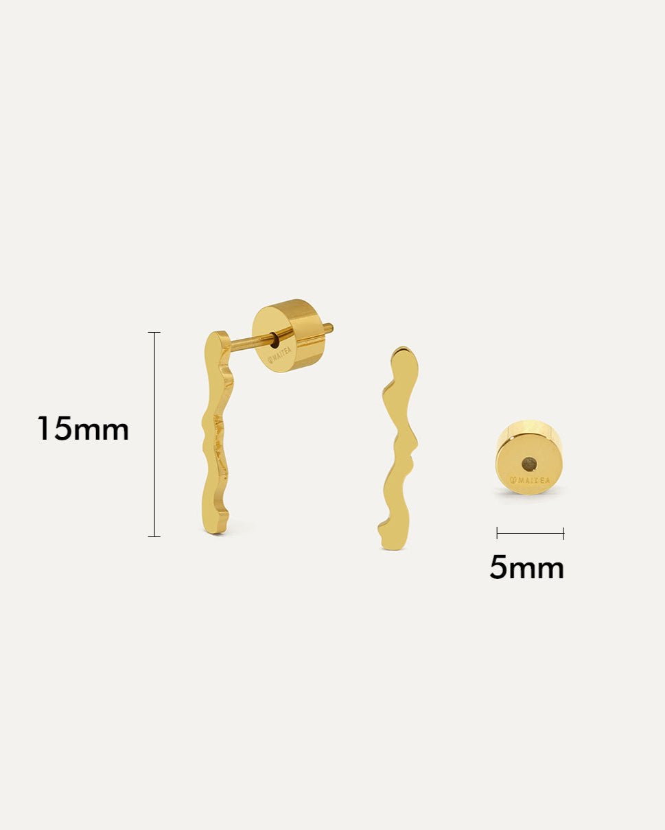 These ear studs have a unique charm. The flowing, almost melted effect of the metal resembles droplets gently dripping from the earlobe. It’s a simple yet captivating design that effortlessly adds a touch of lightness and movement to your look.