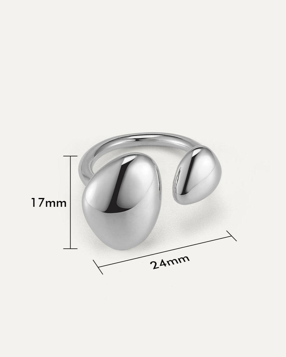 A statement ring with a beautifully organic design – expressive yet floating lightly, as the two shapes seem almost unconnected. Despite its striking appearance, this ring fits perfectly on your finger, thanks to its easy size adjustability.