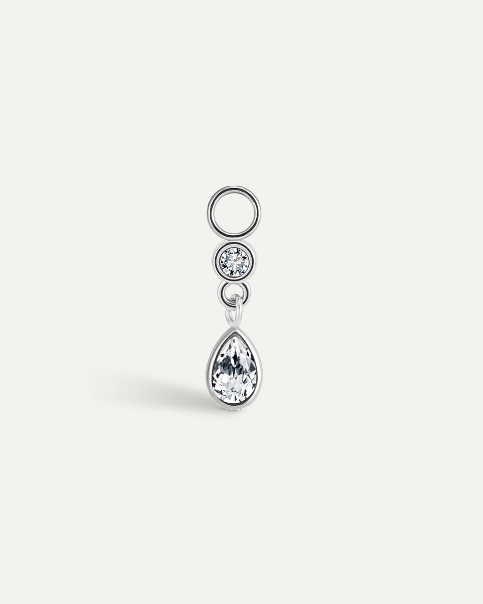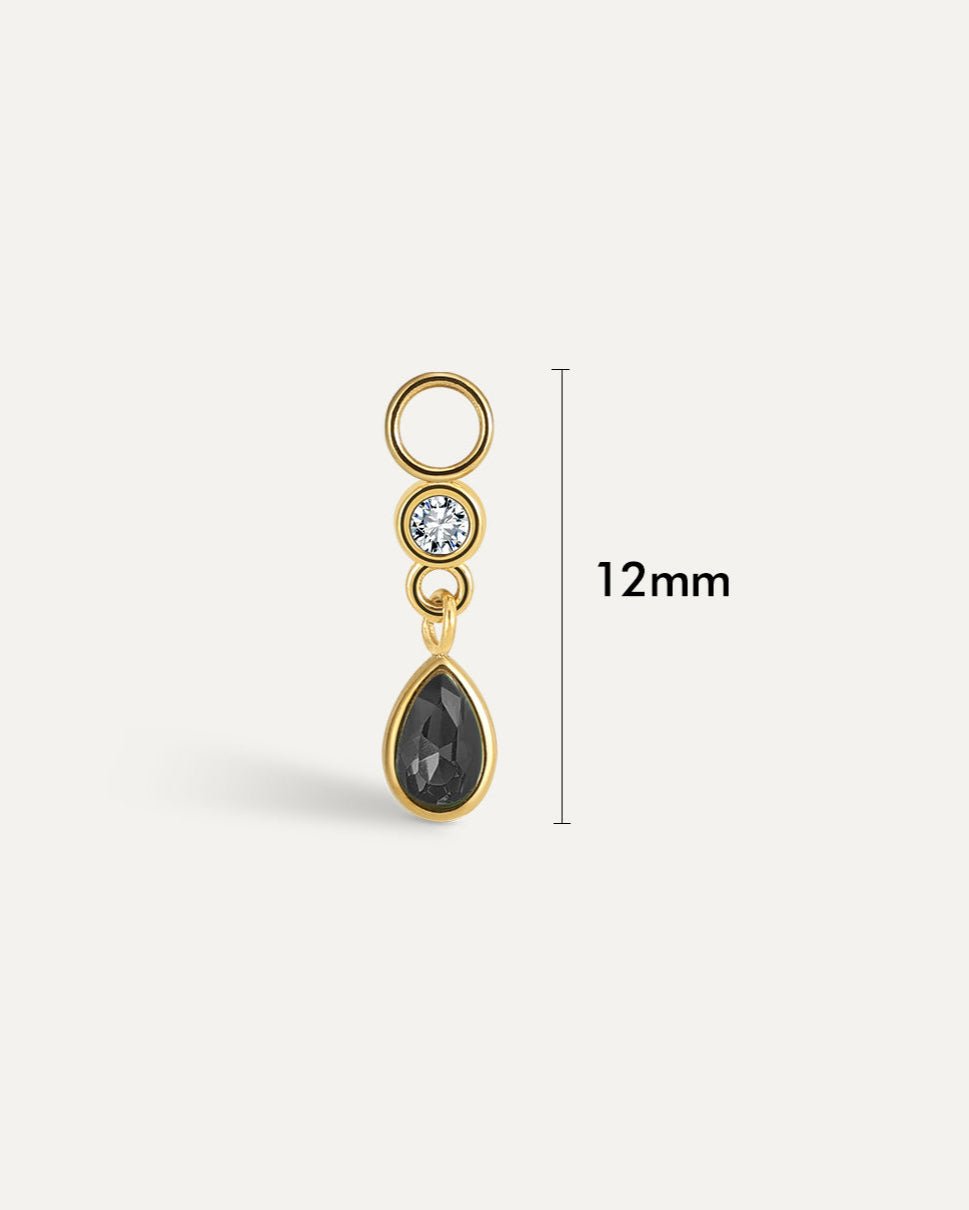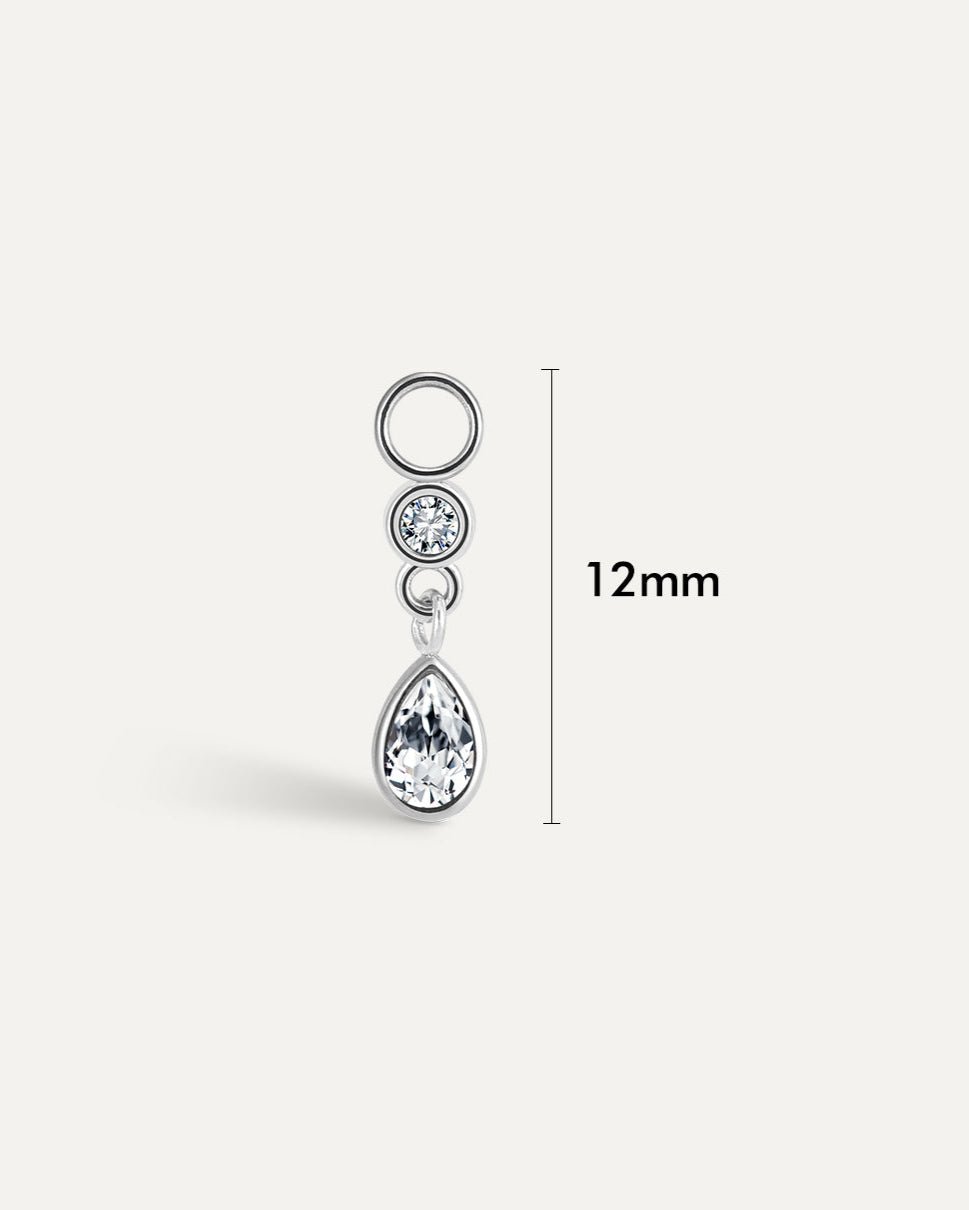 This charm features a round stone paired with a delicate drop-shaped stone, both hanging gently, like tiny drops of light. Their soft movement adds a sense of flow, making it feel as though the stones are always in motion, catching the light just right.