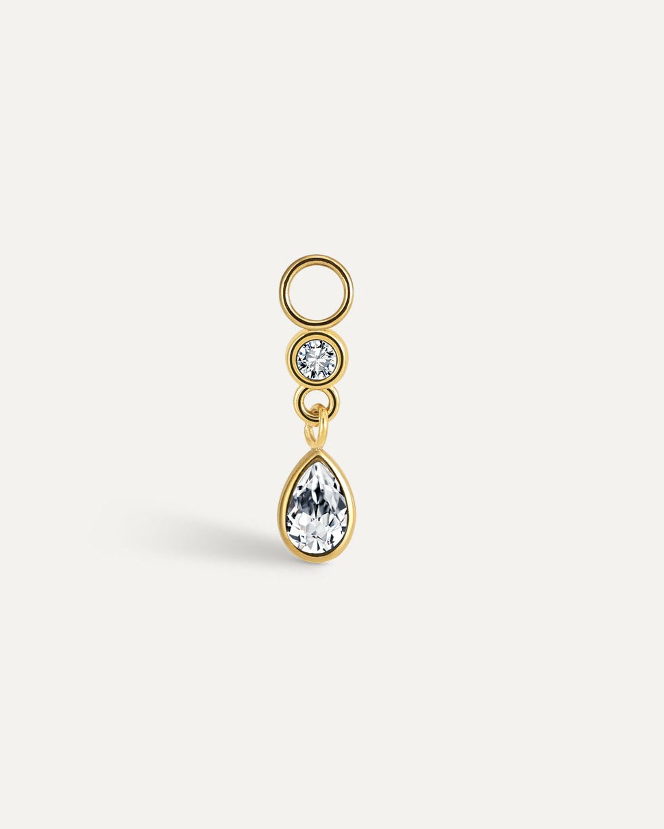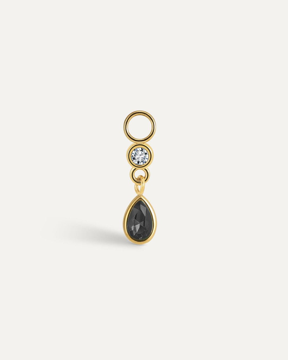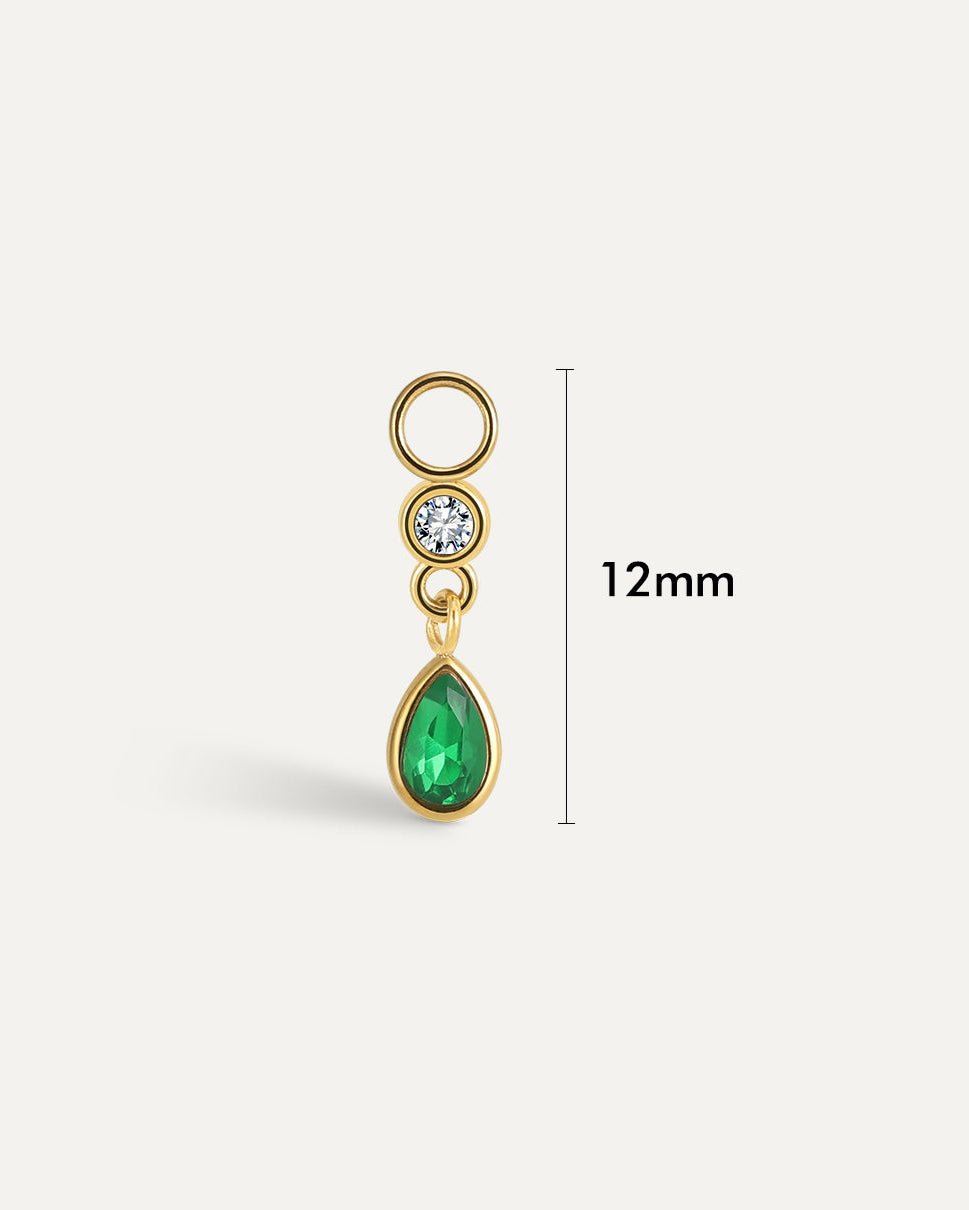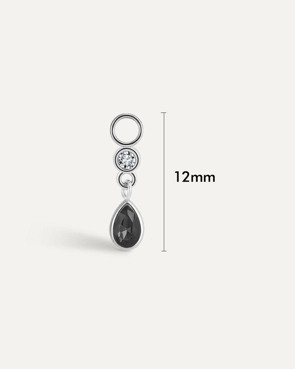 This charm features a round stone paired with a delicate drop-shaped stone, both hanging gently, like tiny drops of light. Their soft movement adds a sense of flow, making it feel as though the stones are always in motion, catching the light just right.