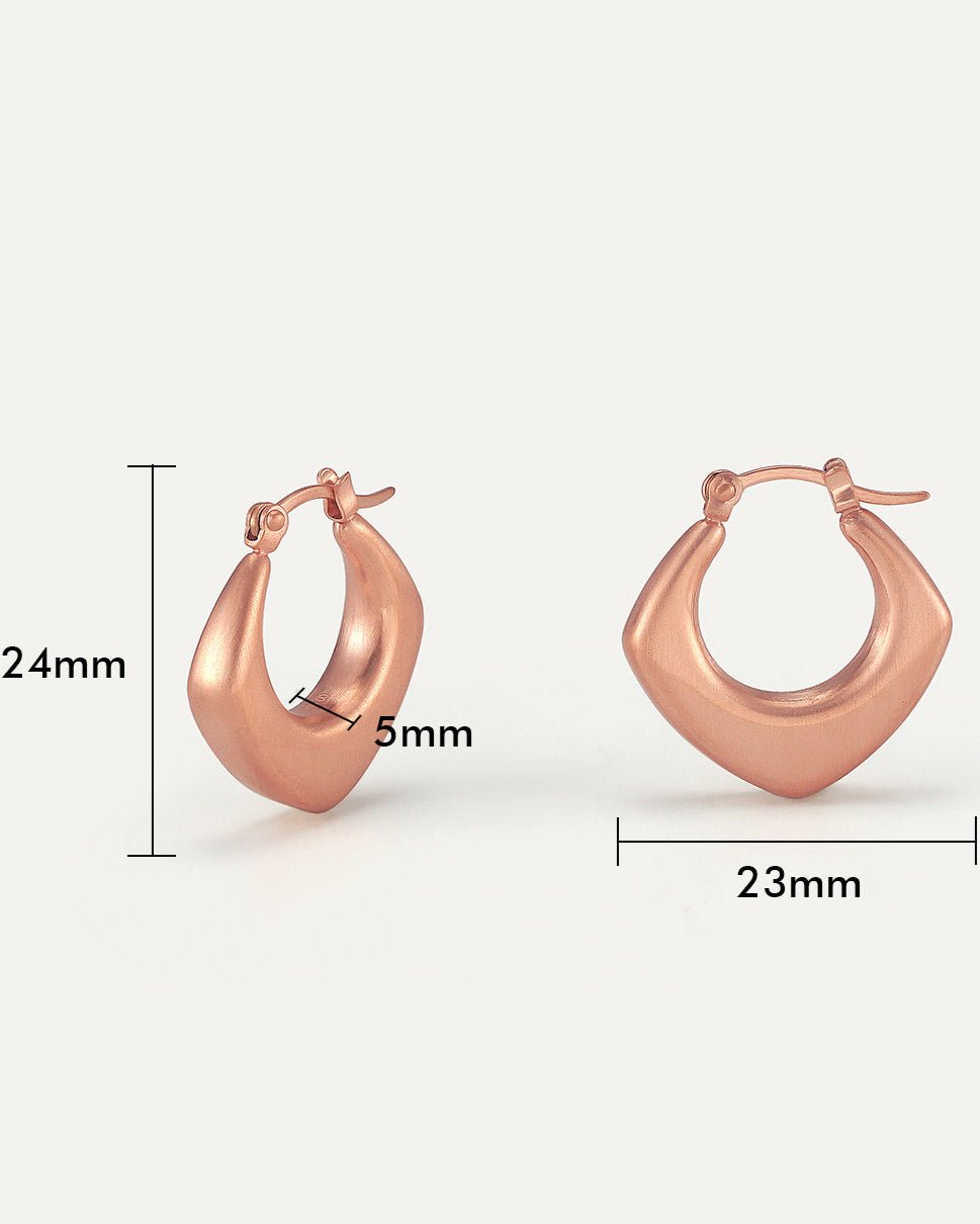 The symmetrical, evenly proportioned angles of a rhombus symbolize balance and harmony, evoking stability and calm. Combined with the soft, rounded bend on the inside of these earrings, it creates a perfectly sized design that feels both elegant and comfortable.