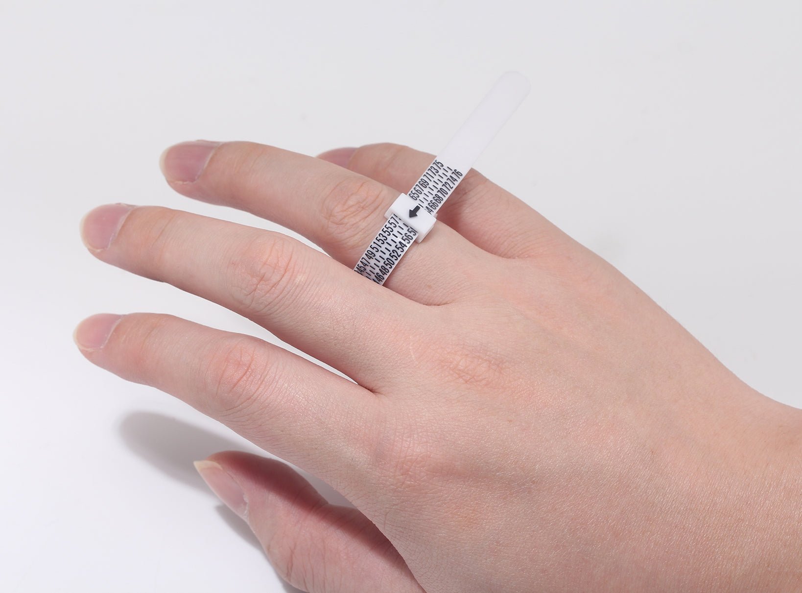 - Slide the end of the ring sizer through the opening so it closes securely, with the black numbers facing outward.