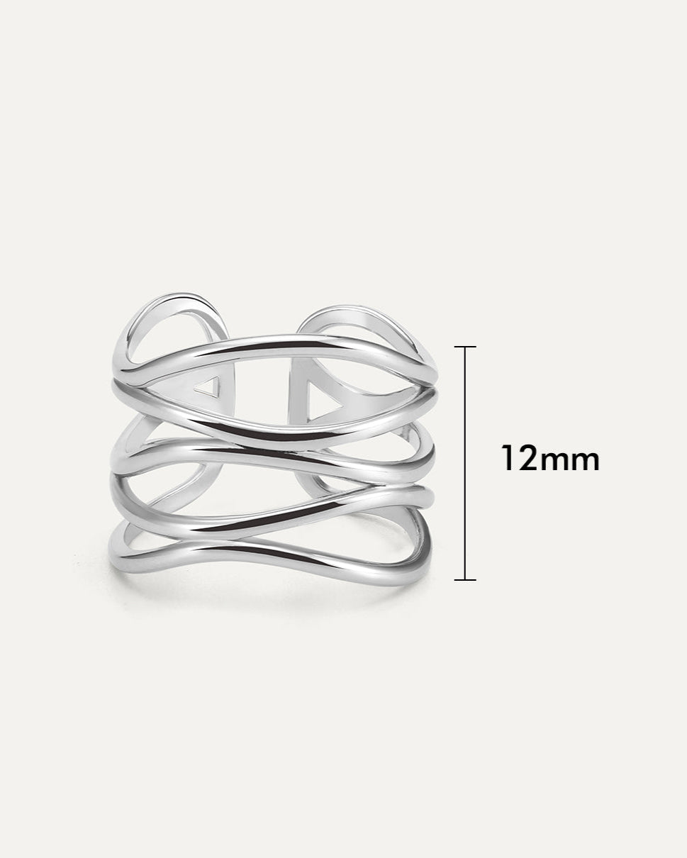 A gentle yet bold ring, with fine lines that weave delicately around your finger. Its larger design creates a striking balance between delicate and intriguing, making it a standout piece.