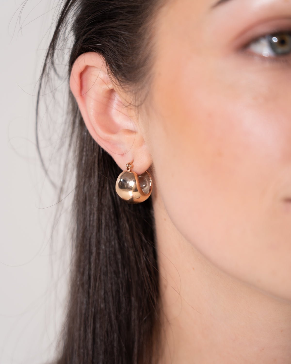 A wider and smaller take on our classic Helena earring. This bold statement piece sits closer to the ear and appears rounder from the front—perfect for a striking yet elegant look.