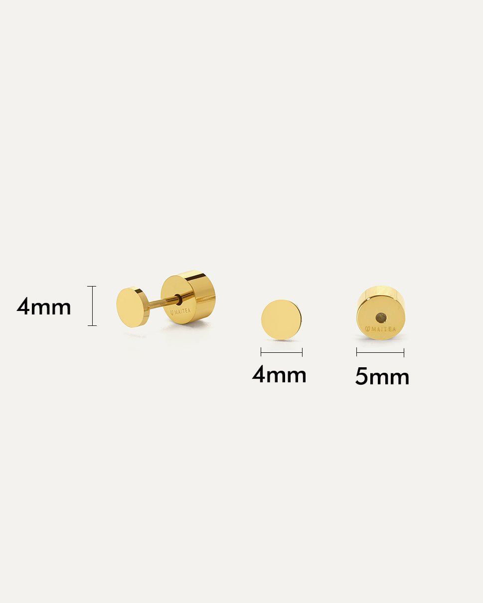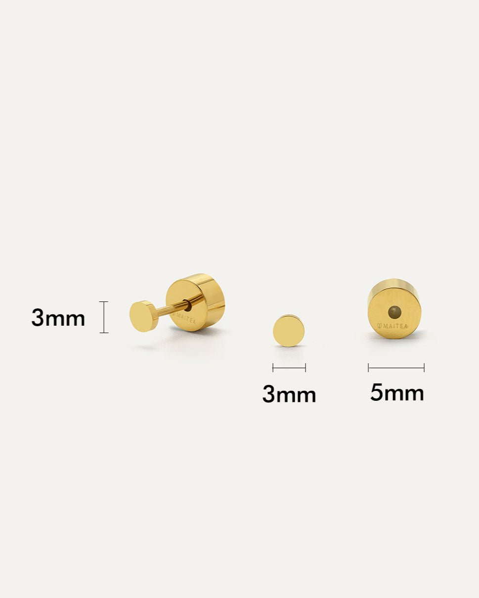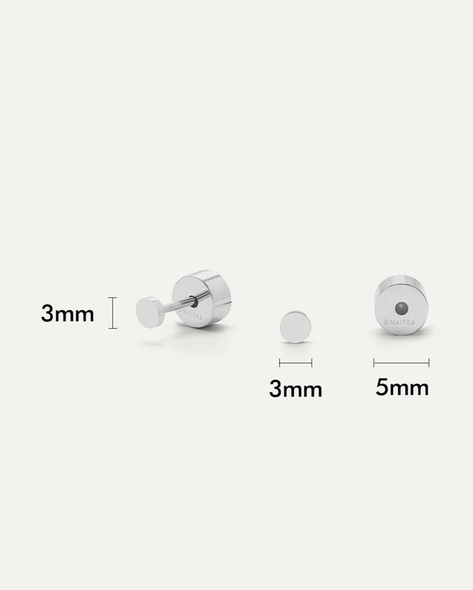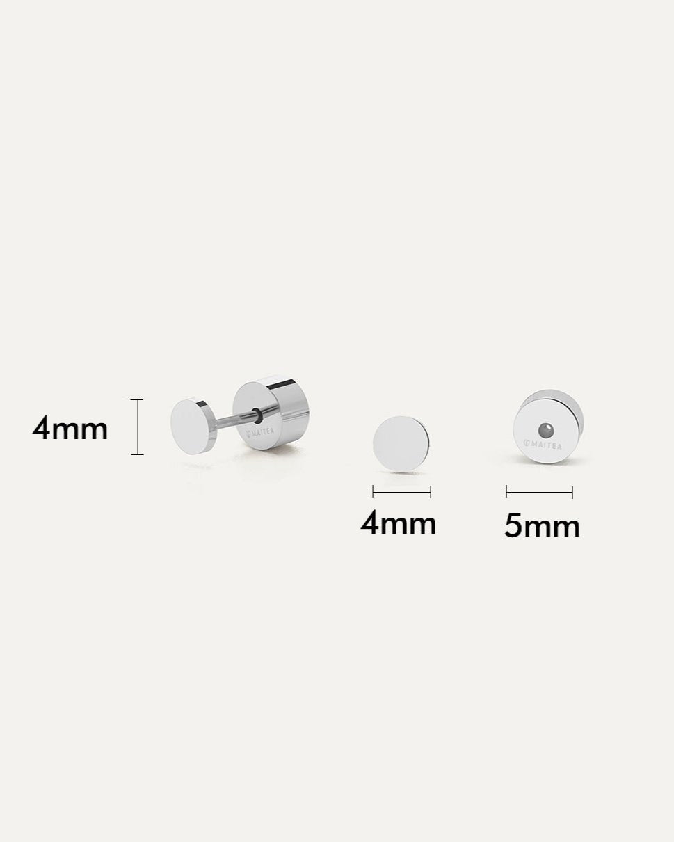 A tiny dot — clean, sharp, and precisely cut, like a sliver of metal sliced from a flat sheet. The look is geometric and bold, but all edges are polished and slightly rounded, so they feel smooth against the skin — no scratching, no digging in. The contrast between the laser-cut style and the soft finish gives this piece its quiet charm.