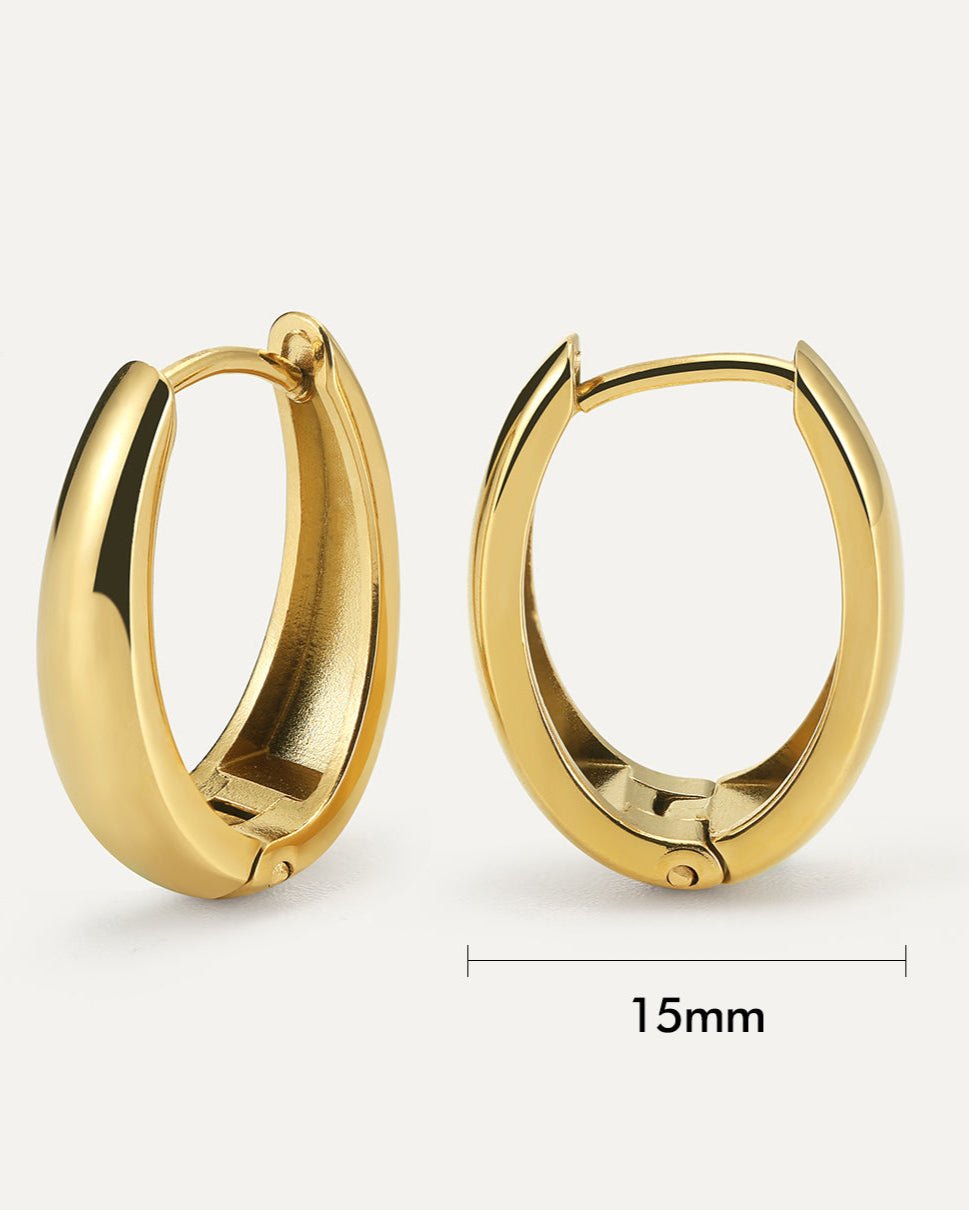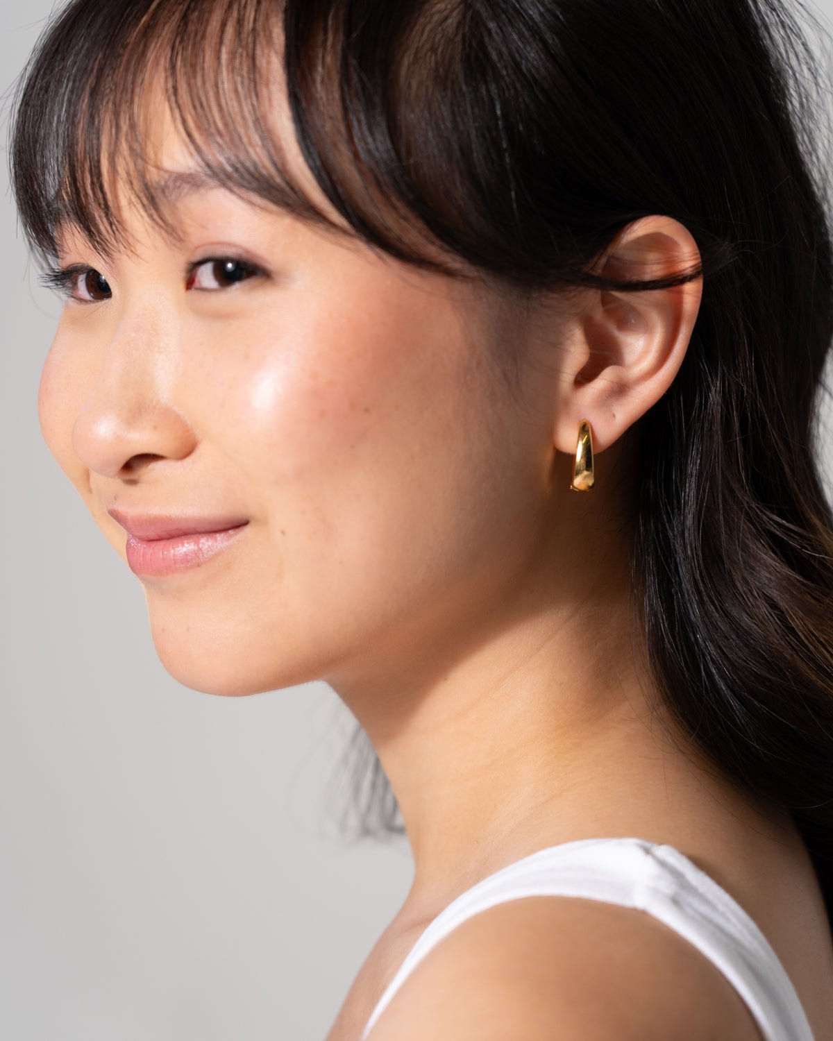 A bold twist on a classic — this huggie has a subtle drop shape that widens slightly at the bottom, giving it a sleek, elegant flow. It’s clean, modern, and brings a touch of fashion-forward energy to any look.