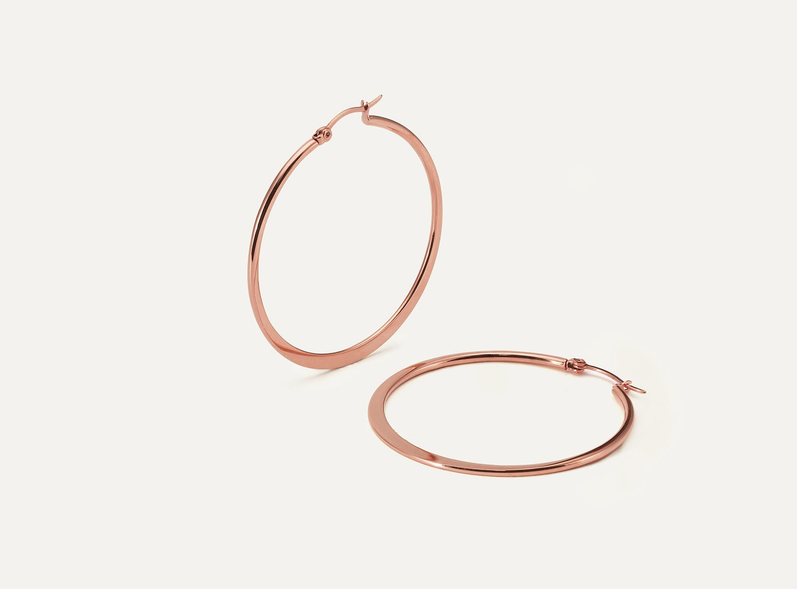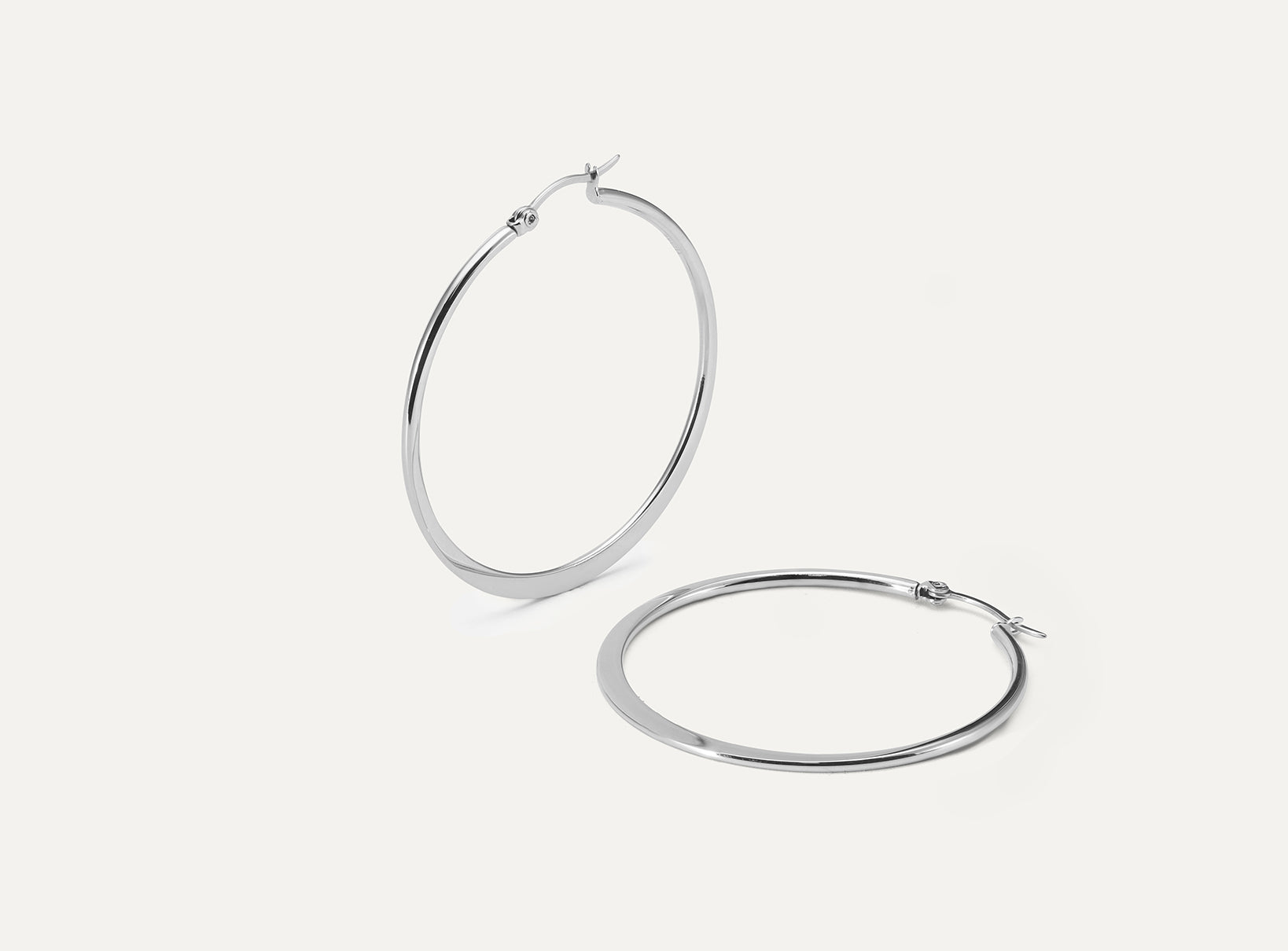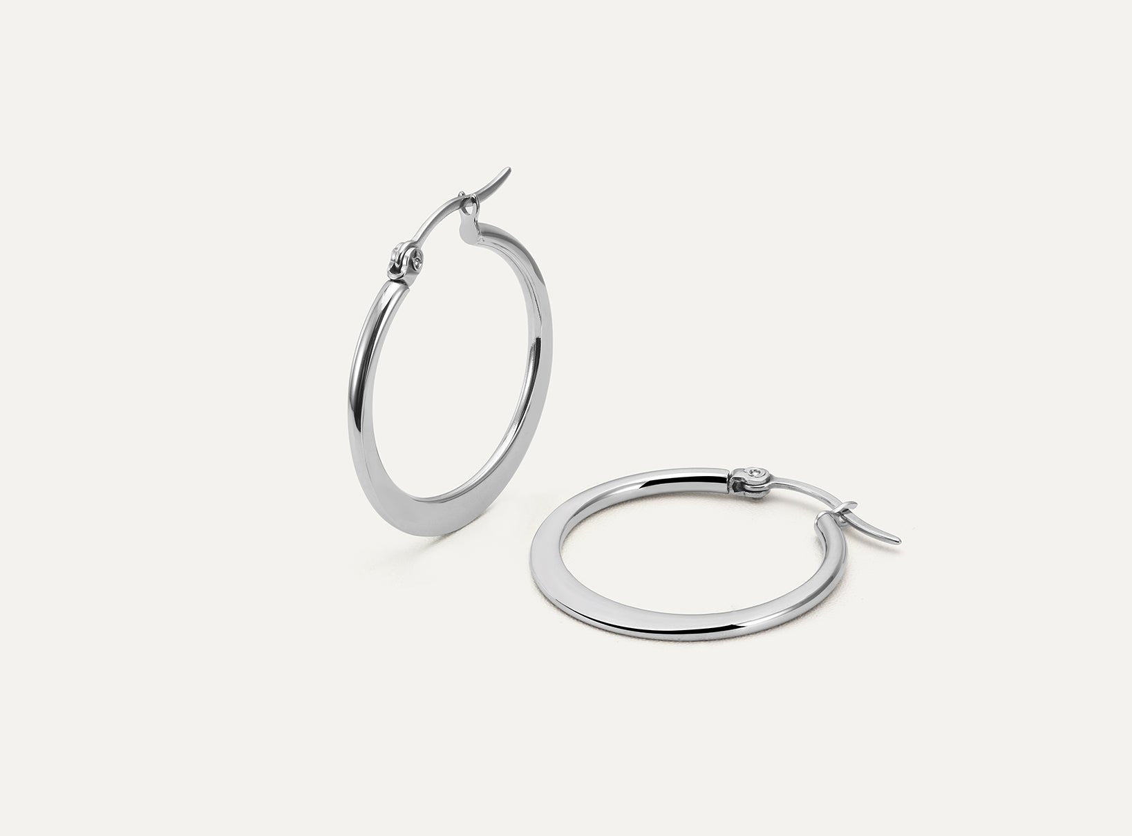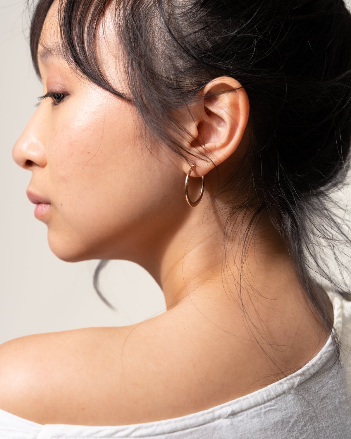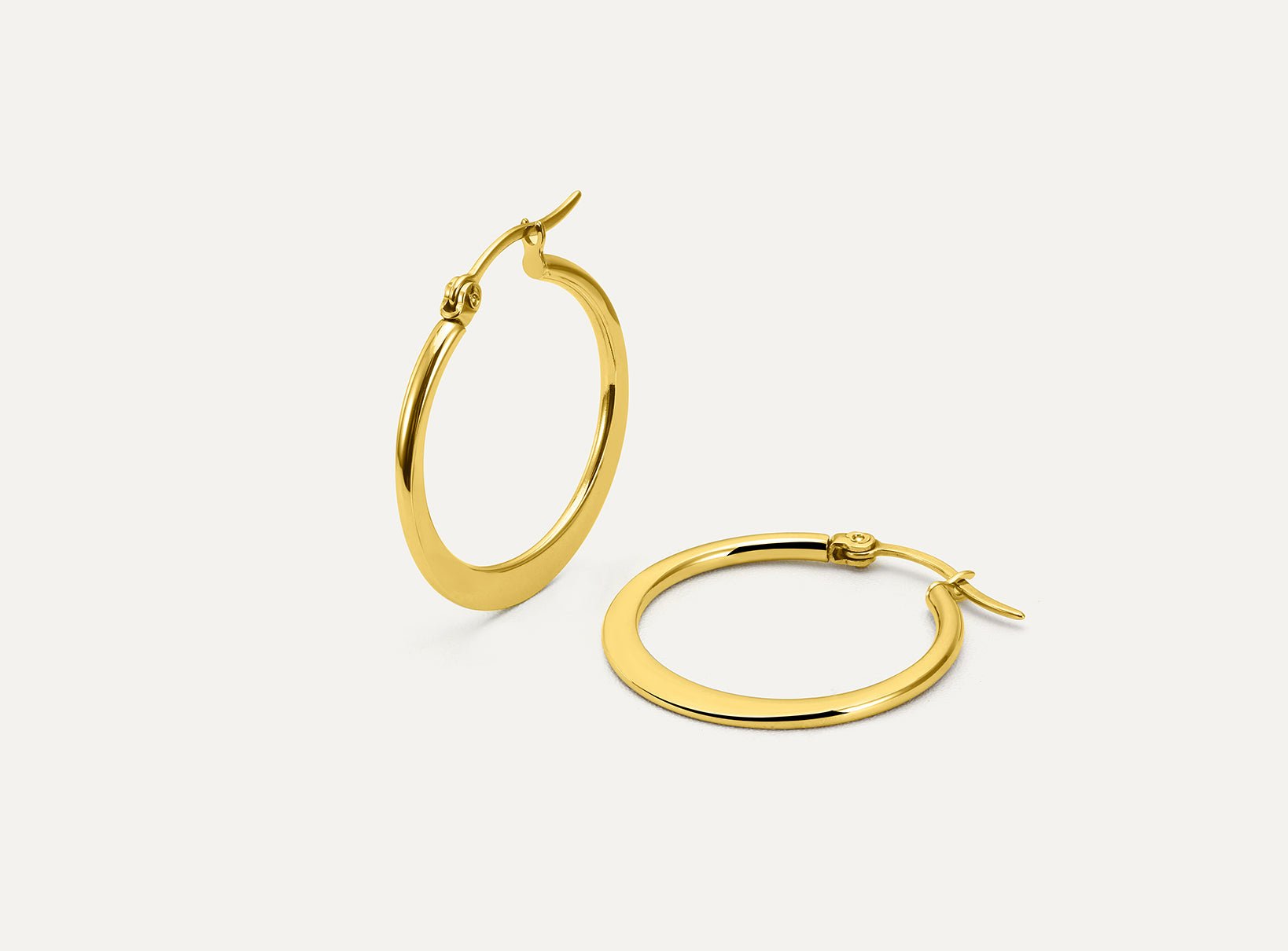 This classic hoop embodies timeless elegance cherished for generations. Its vertically flattened design gives it a finer and more subtle look compared to our Flat Plane Hoop. The flattened section resembles a delicate crescent moon – perfect for those seeking a classic piece with a touch of uniqueness.