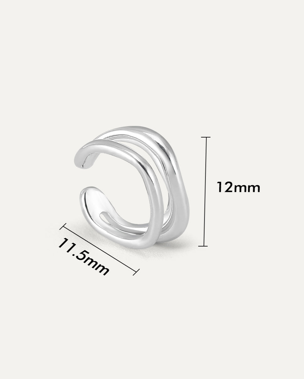 Make a statement with the Melted Line Earcuff, a bold design that combines angular structure with a fluid, molten texture. The double-line pattern blends sharp angles and softened lines, creating a harmonious balance of strength and fluidity for a captivating, eye-catching look.