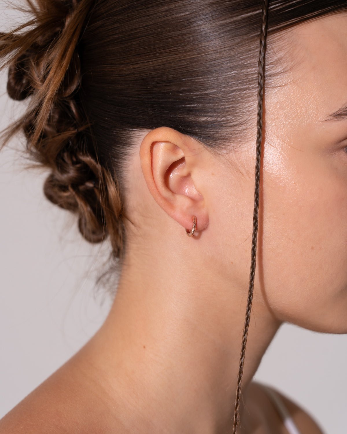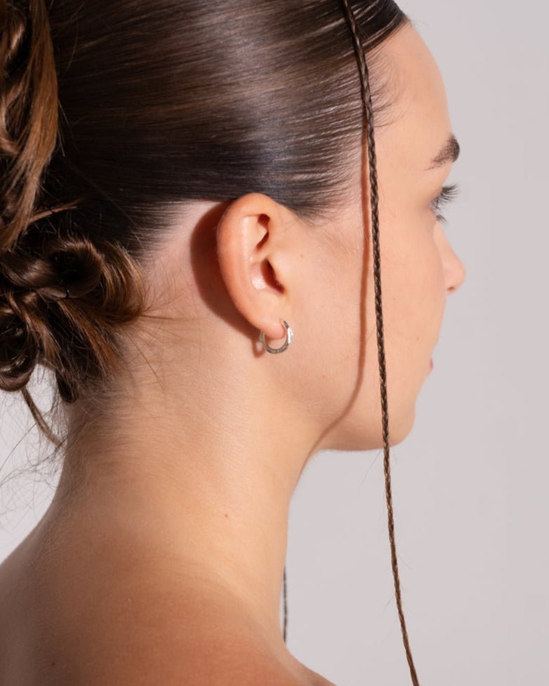 This structured huggie is the perfect example. These earrings are incredibly comfortable, so much so that you can wear them while you sleep. The special hammered texture adds an interesting twist, making them both sleek and stylish.