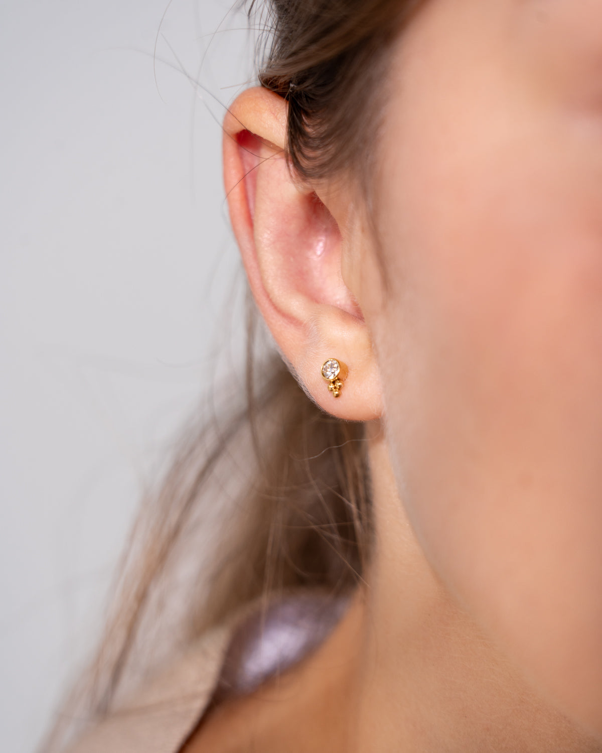 Tipp: Trage ihn mit dem Triple Bubble Stud, wenn Du mehrere Ohrlöcher hast – ein süßes, unaufdringliches Set, das Deinem Look ein bisschen Glanz und gute Laune schenkt.