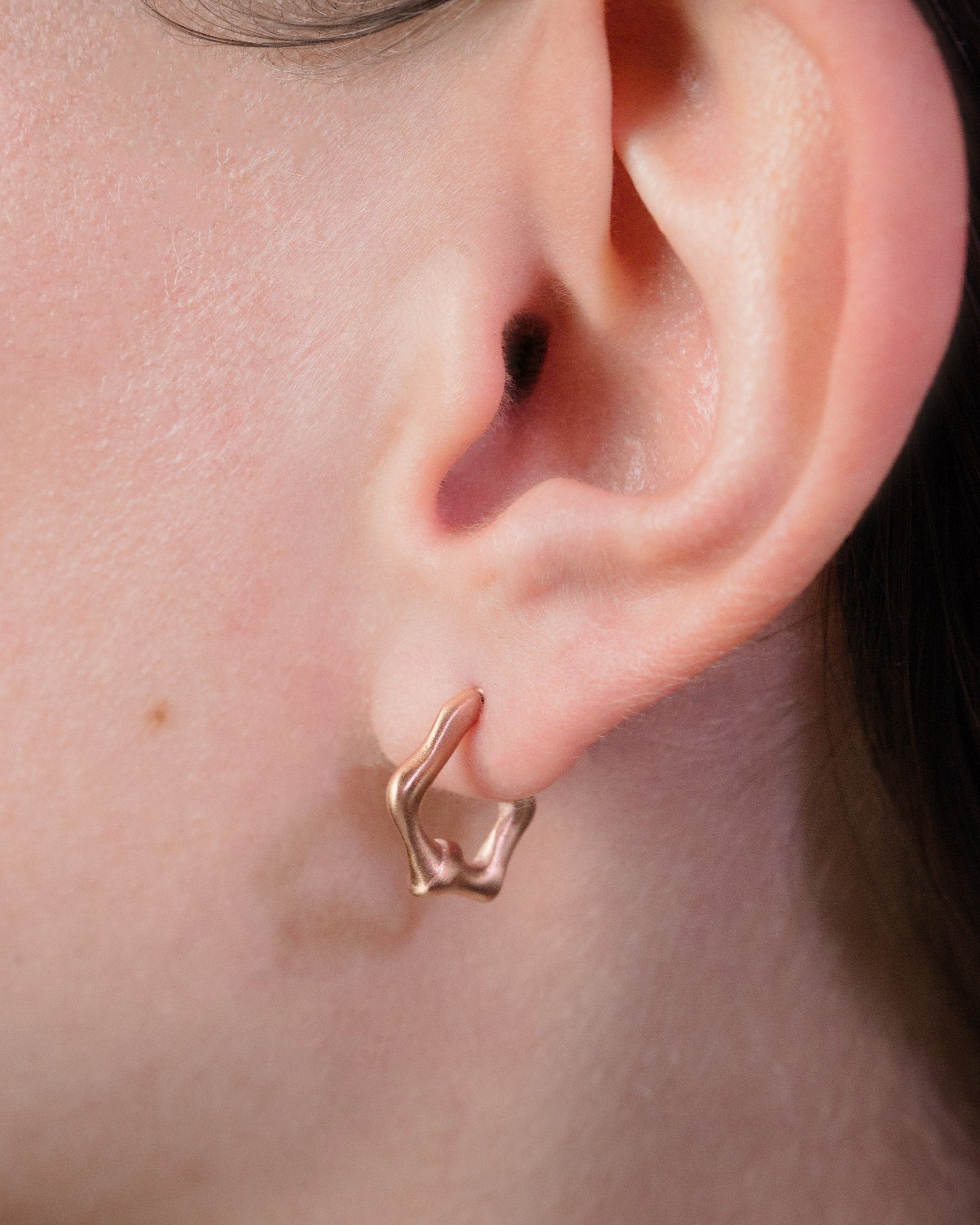 The hand-brushed finish gives these melted-look ear studs a shimmering frosted effect that beautifully reflects light. Paired with their organic shape, they create a striking and versatile piece that works effortlessly with a variety of looks.