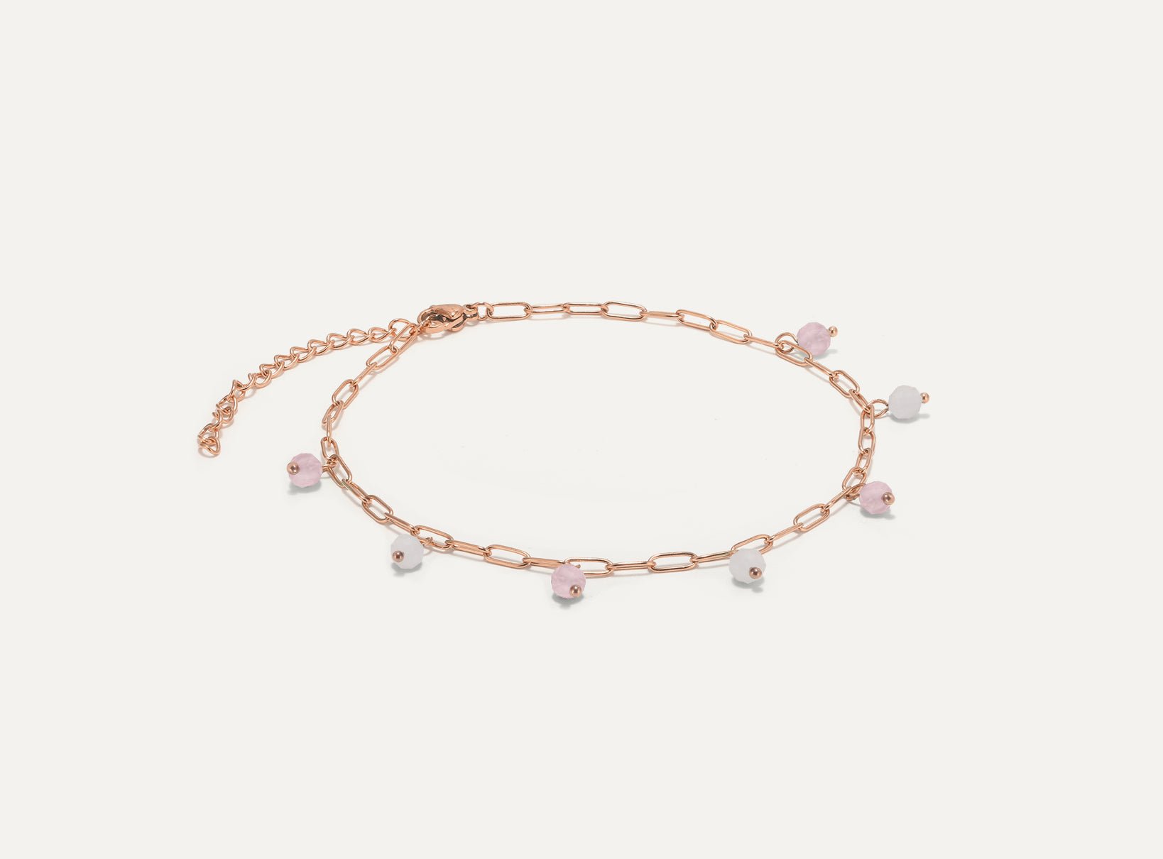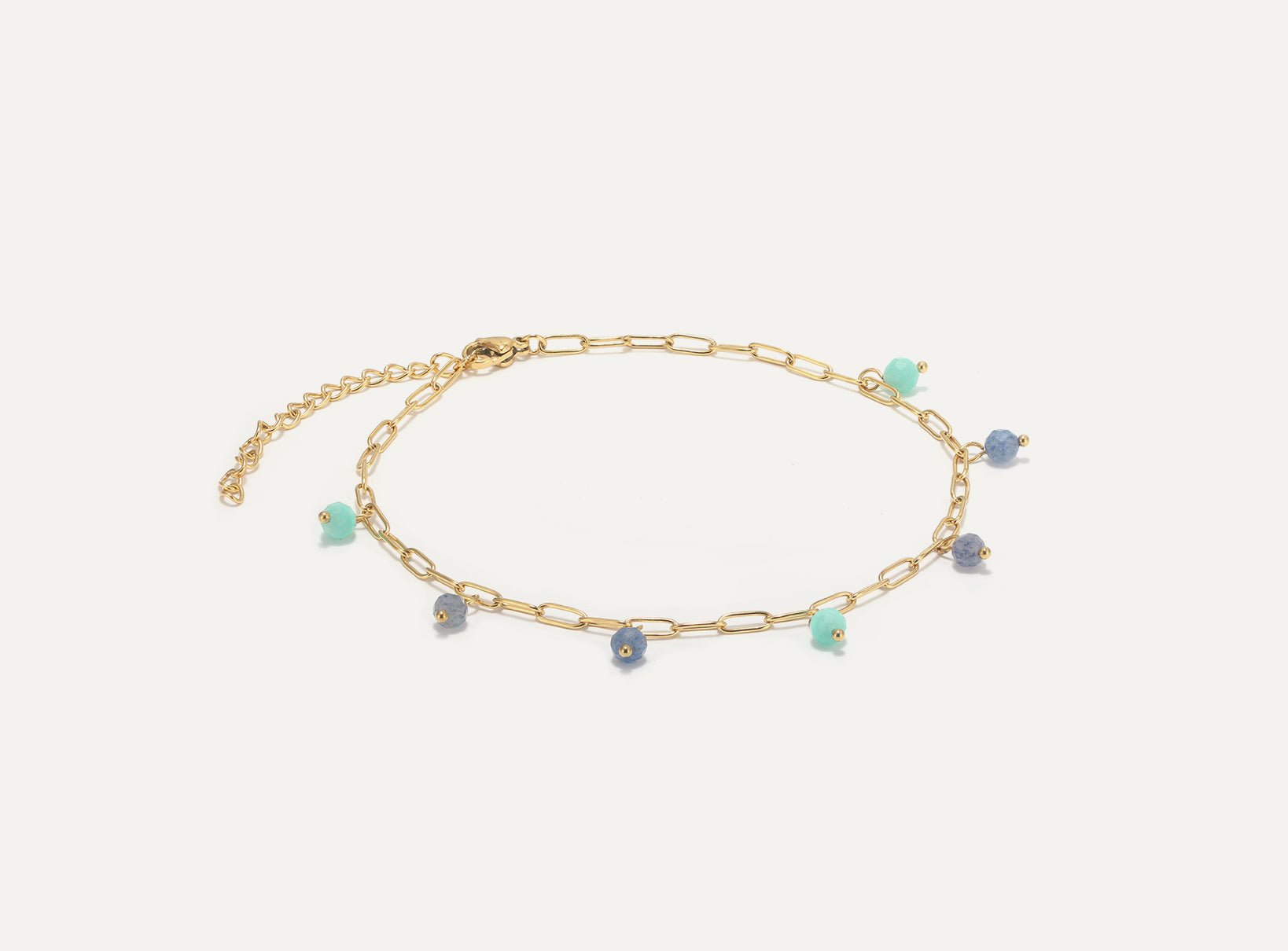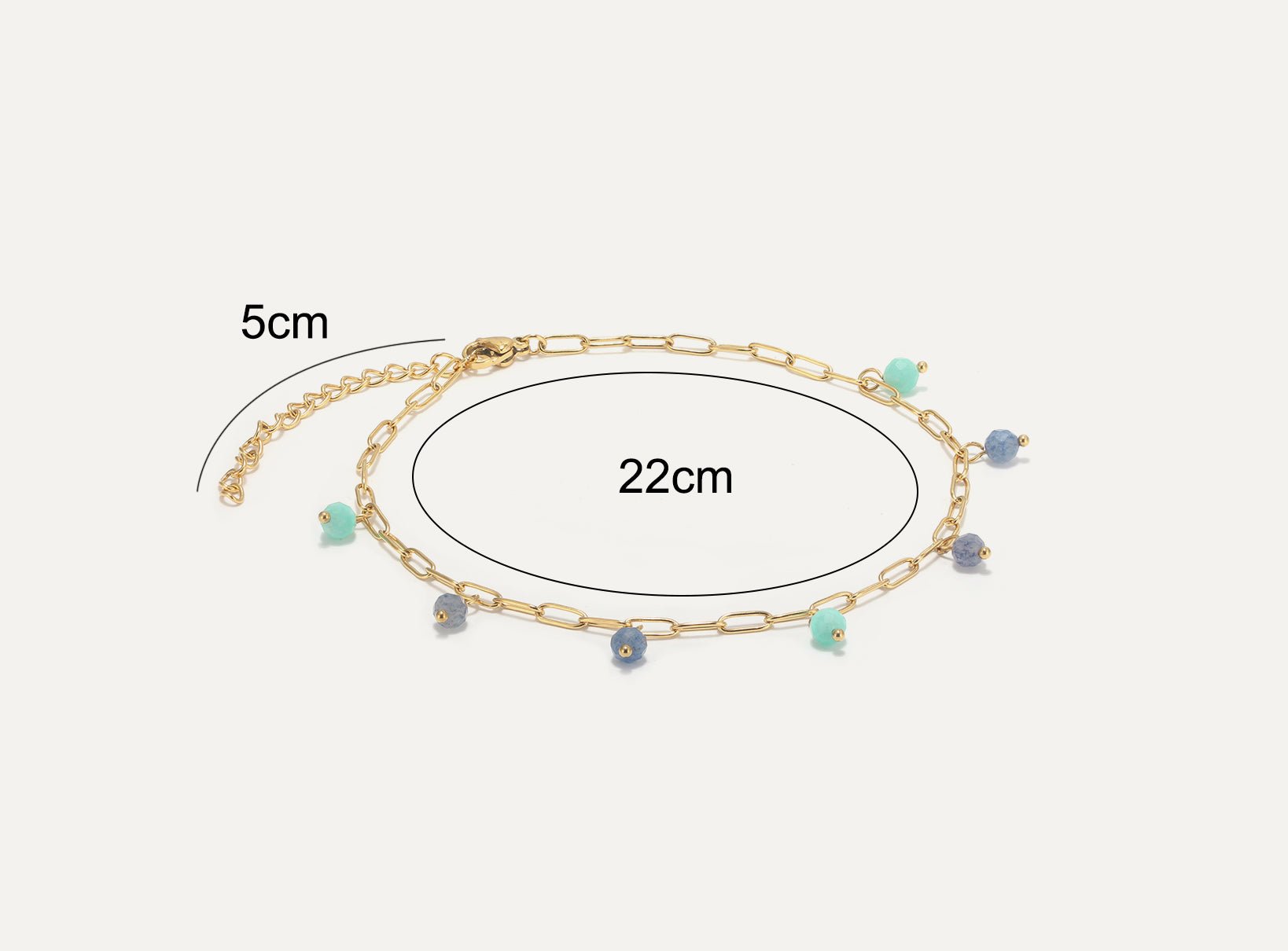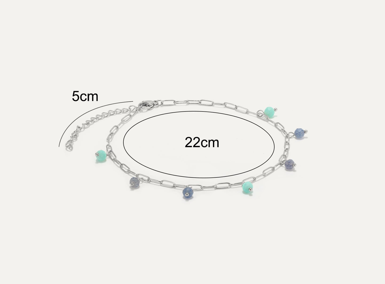 This anklet featuring colorful stone beads is a true eye-catcher, with each bead crafted from real stone and beautifully shaped with a geometric cut that catches the light.