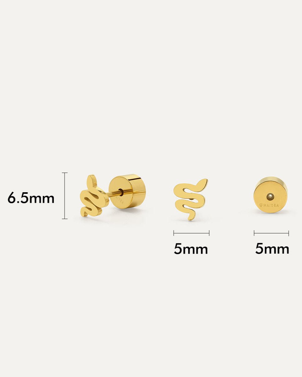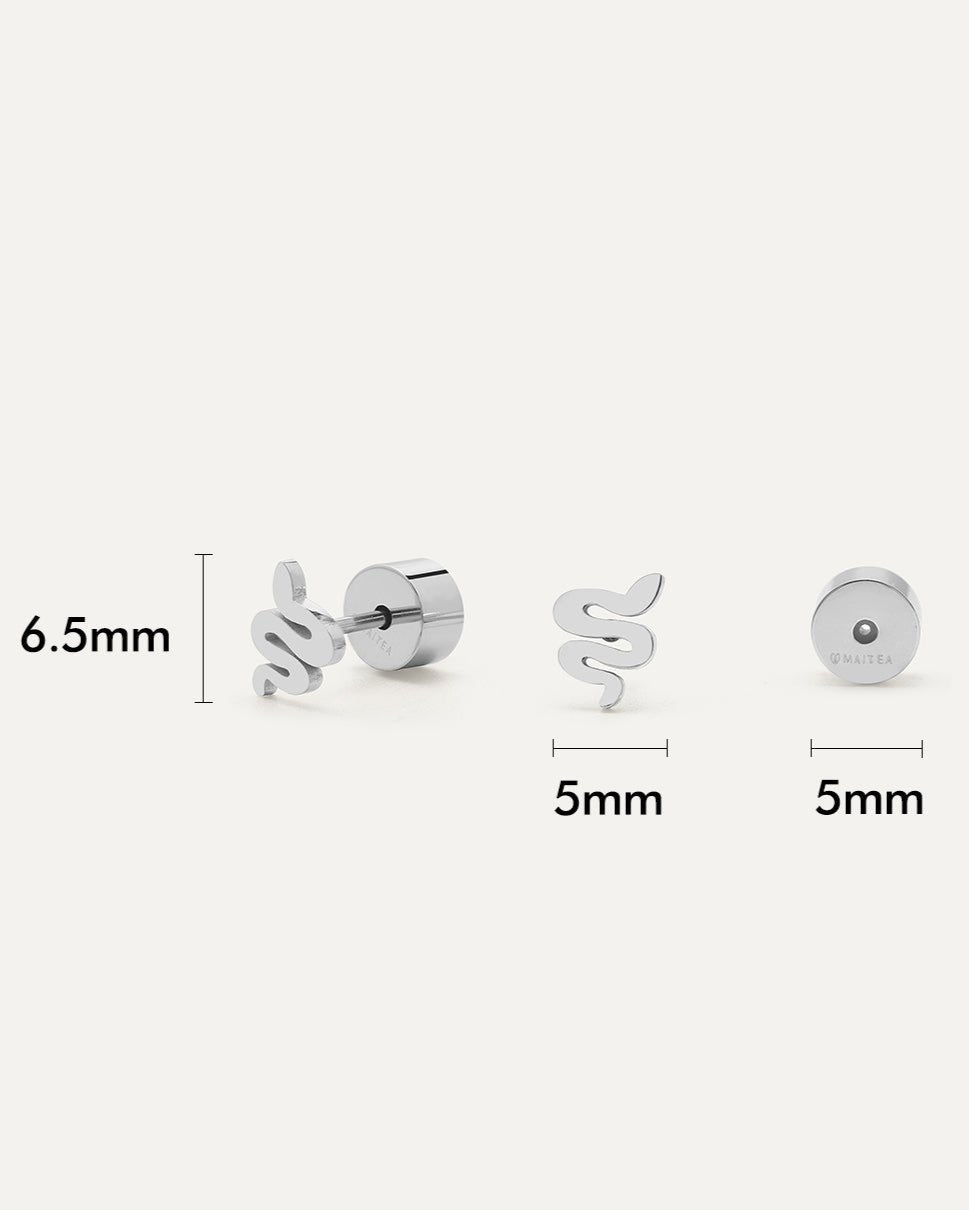The nature of flat, laser-cut steel makes this piece feel beautifully delicate — almost like paper turned into metal. This tiny, winding snake shape adds a subtle mystical touch to your look, especially when stacked with other earrings. Try it in a second hole next to a stone charm huggie for a soft but striking combo.