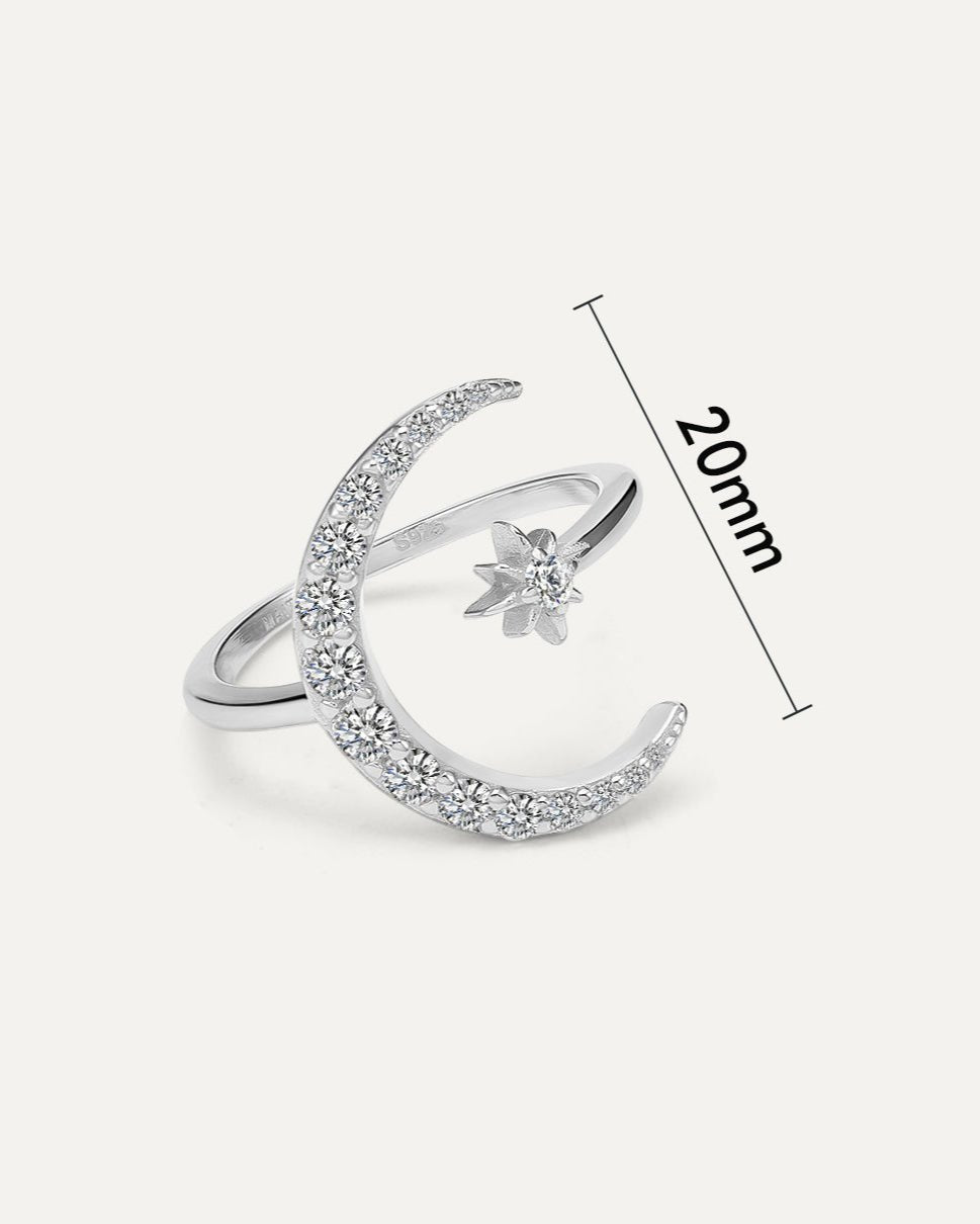 Like a million stars sparkling in the sky, this crescent moon is adorned with stunning zirconia stones, the perfect diamond alternative. The thin, elegant curve cradle a single star , bringing balance and a touch of celestial beauty.