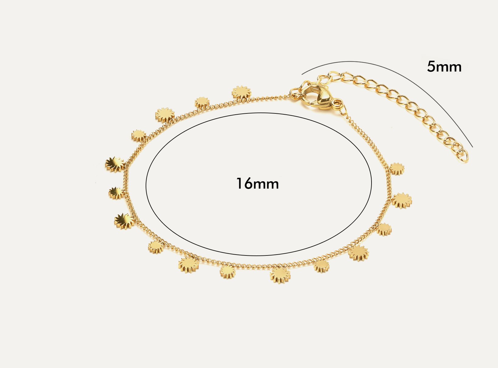 The sun symbolizes energy , growth , and the warmth that keeps us grounded. In this bracelet, the sun charm shines with a soft, inviting glow, adding a gentle touch of brightness to your everyday look.