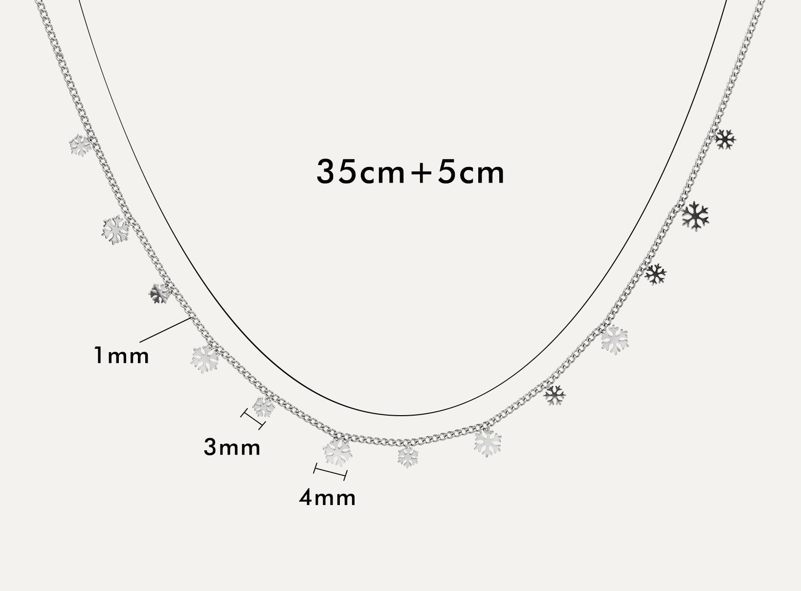 This necklace features delicate snowflake charms that shimmer softly , their intricate design catching the light in a way that feels both personal and magical .
