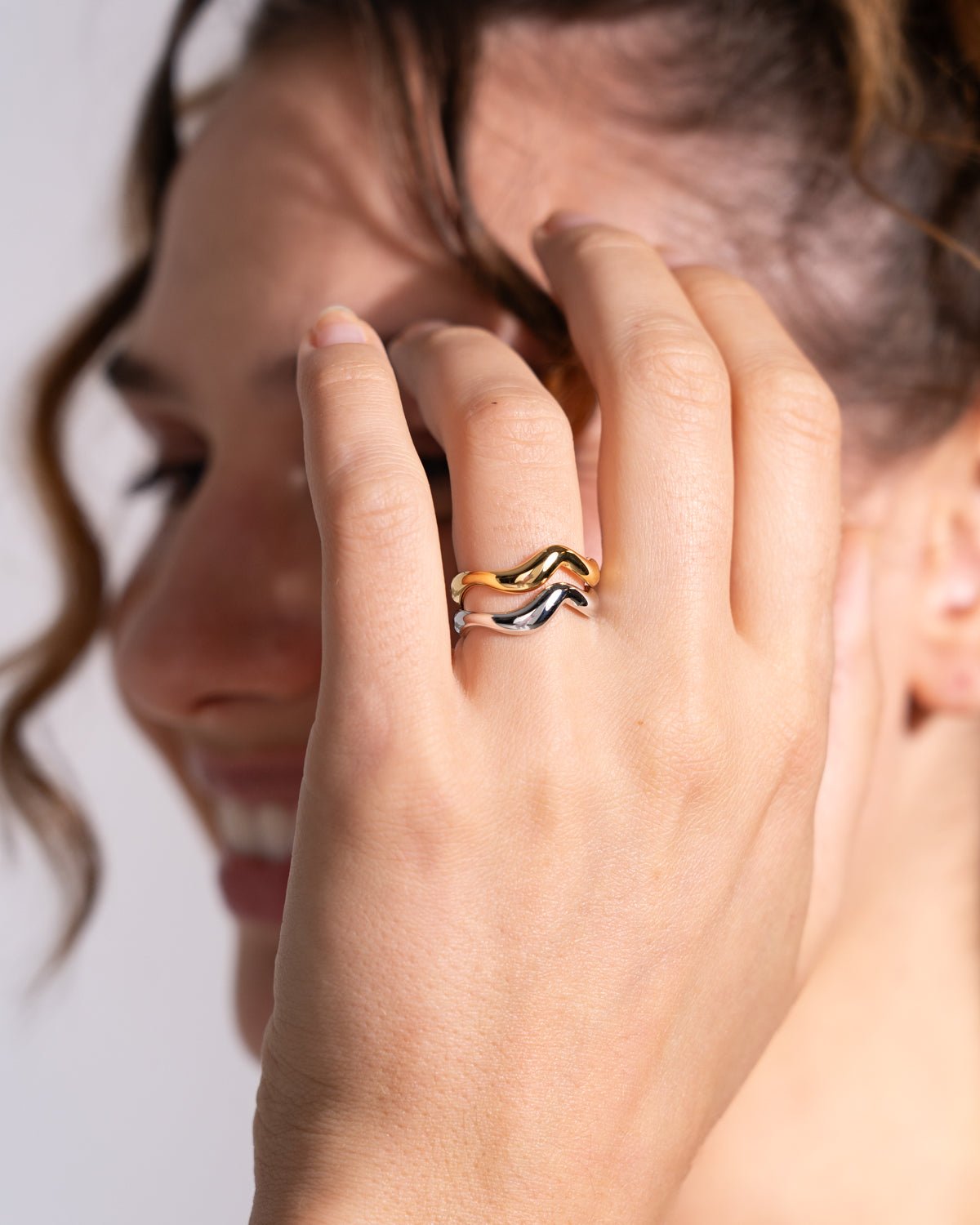 Inspired by the gentle waves of the ocean, this ring wraps softly around the finger, evoking the feeling of being far at sea. The smooth, undulating curve mirrors the rhythm and tranquility of the water, making this piece a serene statement of nature's elegance.